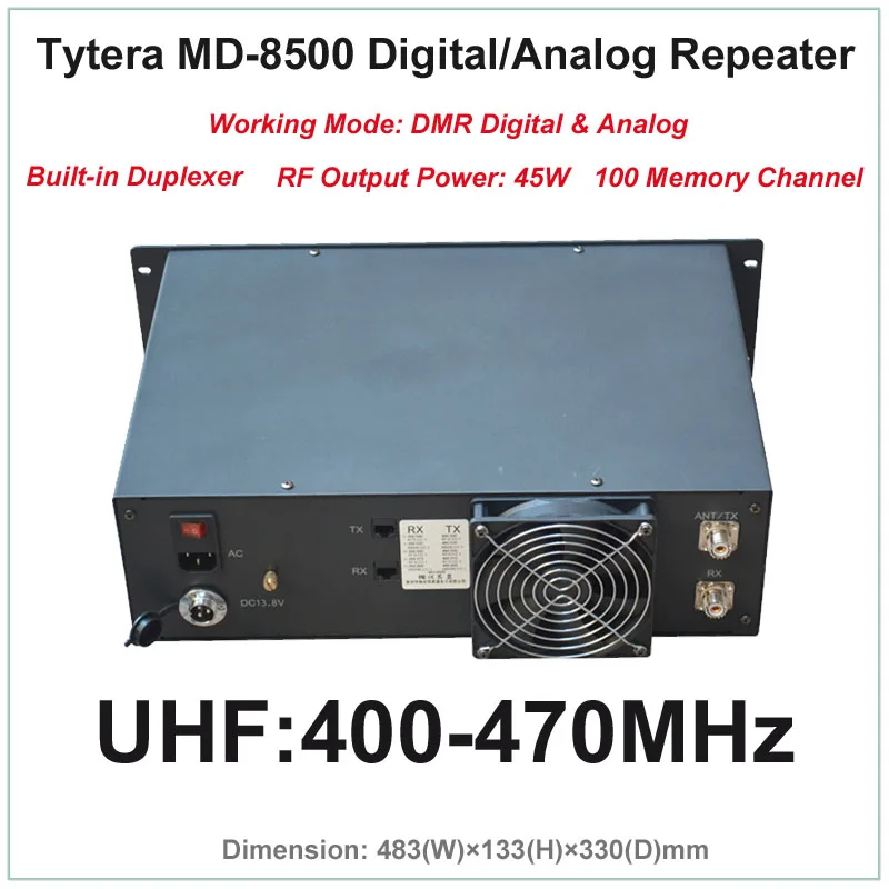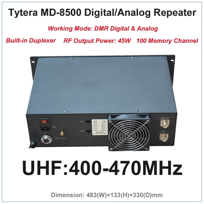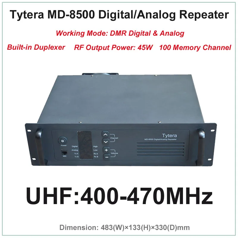 Tytera TYT MD-8500 UHF 400-470MHz DMR Digital & Analog Professional Walkie Talkie Repeater with?Free Programming cable and Software (Built-in?Duplexer,RF Output Power 45W,100 Memory Channel)